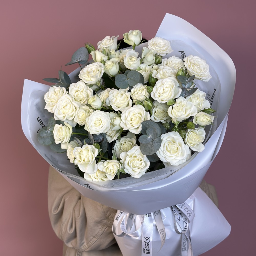 Букет из кустовых роз - 11 шт. с добавлением эвкалипта.